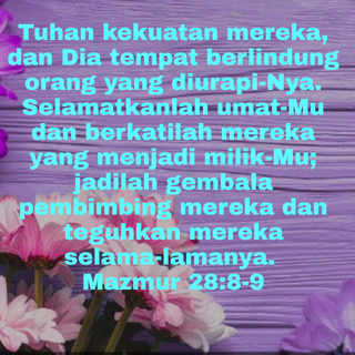 TUHAN melindungi umat-Nya; Dia membela dan menyelamatkan raja pilihan-Nya. Ya TUHAN, selamatkanlah umat-Mu, dan berkatilah mereka yang menjadi milik-Mu. Jadilah seperti gembala bagi mereka, dan jagalah mereka selama-lamanya.